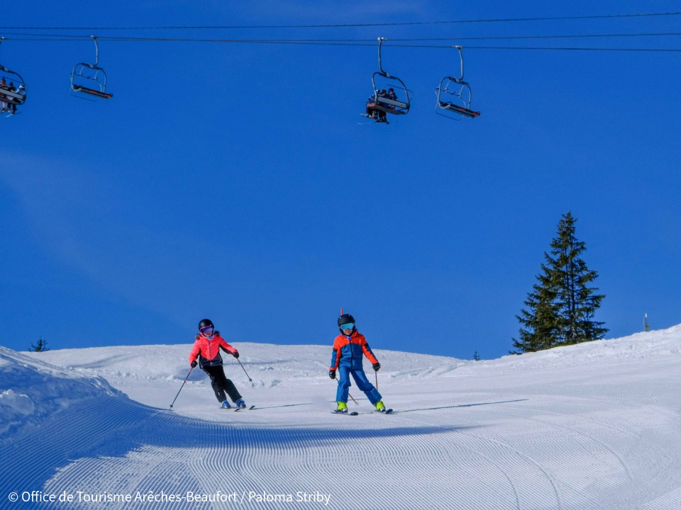 Composé de 2 secteurs : Cuvy et Planay, le domaine skiable d'Arêches-Beaufort vous offre une expérience variés et adaptée à tous les niveaux de pratique. Avec un espace débutant, un freestyle park et un woodpark, vous pourrez évoluer en douceur sur les pentes douces ou "envoyer du gros" dans les zones forestières plus pentues. Son enneigement exceptionnel de 1080 m à 2300 m d'altitude fait d'Arêches-Beaufort un site recherché aussi bien par les skieurs de tous niveaux (55 km de pistes), que par les adeptes de courses de ski-randonnée en montagne, comme la célèbre Pierra Menta.